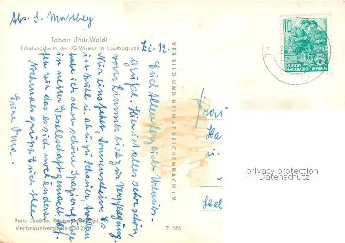 Tabarz Erholungshei der IG Wismut im Lauchagrund Tabarz postalisch gelaufen nach 1965 Erhaltung siehe scans [WerneD78] WernPID7
