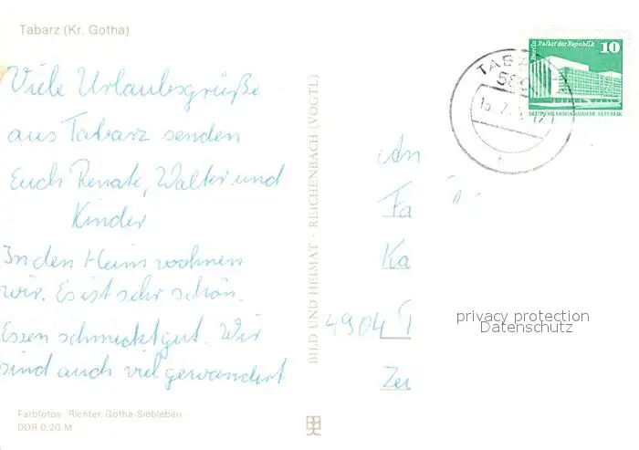Tabarz Erholungsheim Theo Neubauer Tabarz postalisch gelaufen nach 1965 Erhaltung siehe scans [NatalD47] NataID47