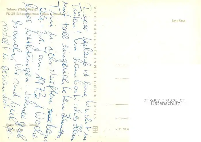 Tabarz Erholungsheim Theo Neubauer Tabarz postalisch nicht gelaufen nach 1965 Erhaltung siehe scans [LiesaD40] LiesID40
