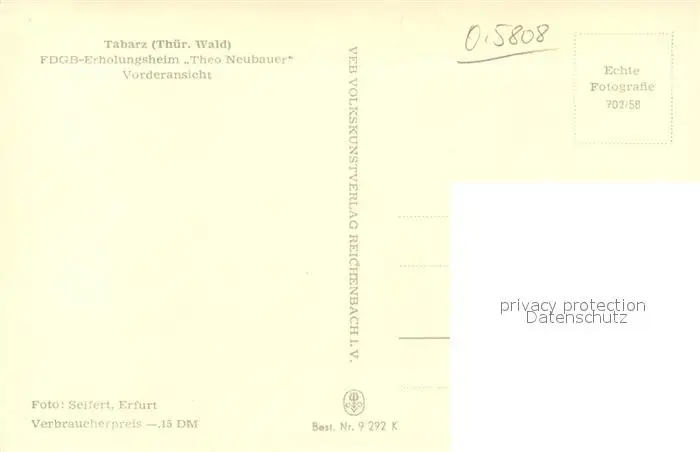 Tabarz Erholungsheim Theo Neubauer Tabarz postalisch nicht gelaufen 1921-1965 Erhaltung siehe scans [LiesaD40] LiesID40
