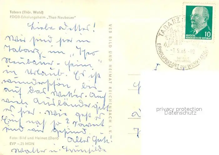 Tabarz Erholungsheim Theo Neubauer Tabarz postalisch gelaufen 1965 Erhaltung siehe scans [LiesaD40] LiesID40