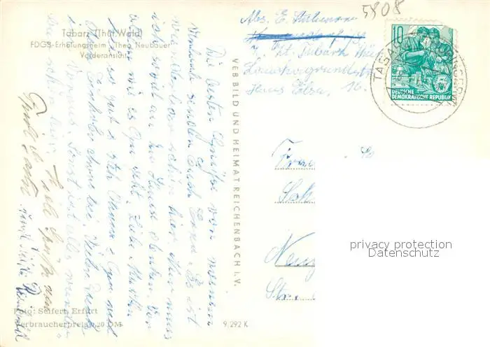 Tabarz FDGB-Erholungsheim Theo Neubauer Vorderansicht Tabarz postalisch gelaufen 1961 Erhaltung siehe scans [LiesaD40] LiesID40