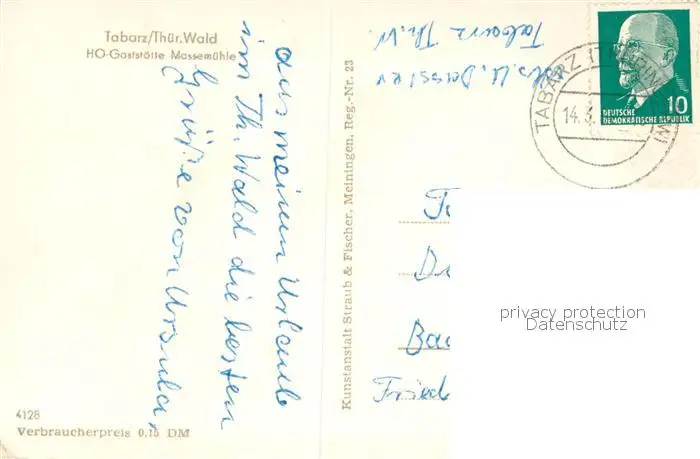 Tabarz HO Gaststaette Massemuehle Tabarz postalisch gelaufen 1921-1965 Erhaltung siehe scans [WerneD78] WernPID7