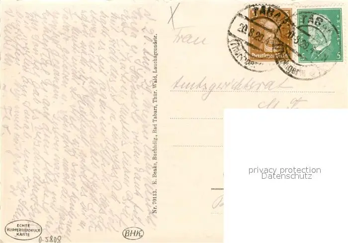 Tabarz Massermuehle Tabarz postalisch gelaufen 1929 Erhaltung siehe scans [WerneD78] WernPID7