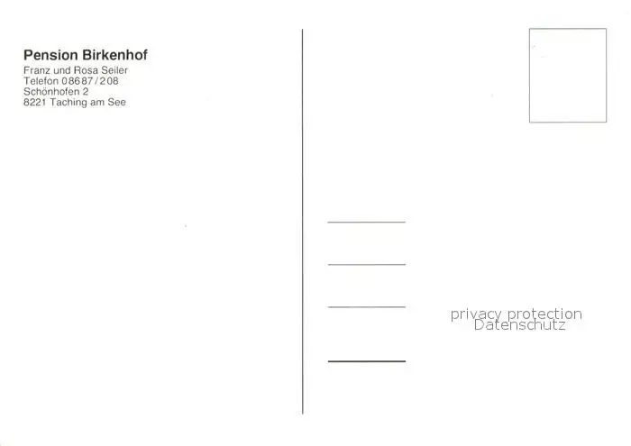 Taching_See Pension Birkenhof Garten Taching See postalisch nicht gelaufen nach 1965 Erhaltung siehe scans [FriedD77] Frierer