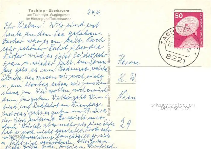 Taching See Kategorie Alte Ansichtskarten Postkarten bx55821 Taching_See Tachinger Wagingersee Tettenhausen Taching See postalisch gelaufen nach 1965 Erhaltung siehe scans [NatalD47]