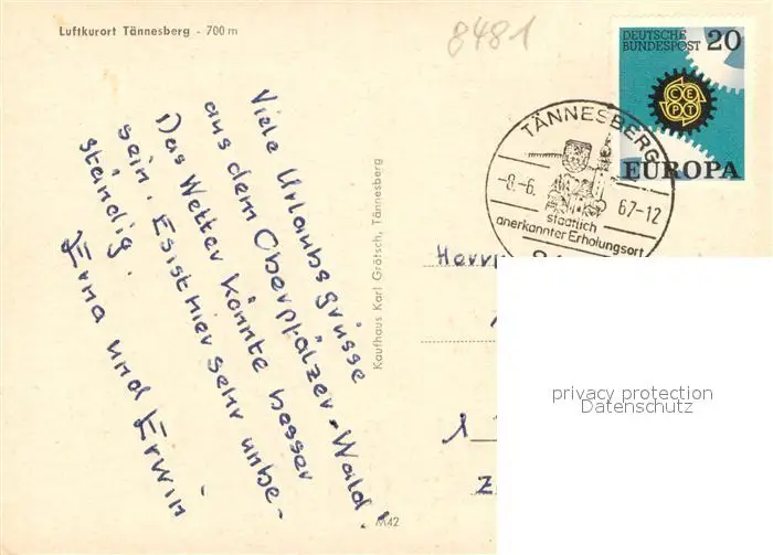Taennesberg Gesamtansicht Luftkurort Taennesberg postalisch gelaufen 1967 Erhaltung siehe scans [FriedD77] Frierer