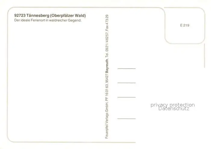 Taennesberg Panorama Ferienort Luftkurort im Oberpfaelzer Wald Landschaft Natur Gedenkstein Taennesberg postalisch nicht gelaufen nach 1965 Erhaltung siehe scans [FriedD77] Frierer