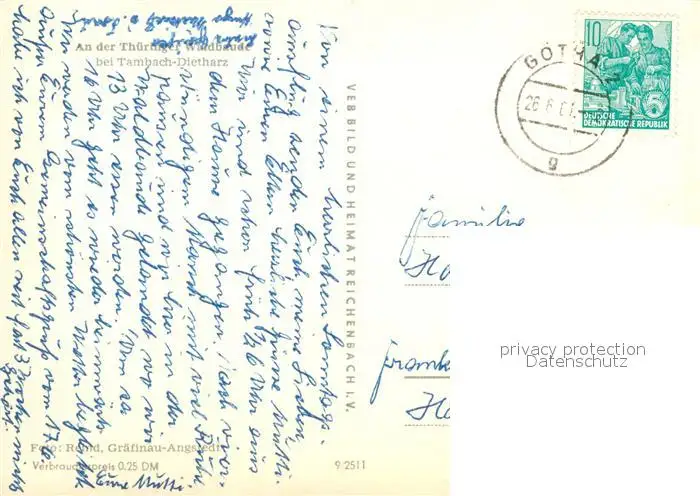 Tambach-Dietharz Landschaftspanorama Thueringer Waldbaude Tambach-Dietharz postalisch gelaufen 1961 Erhaltung siehe scans [FriedD77] Frierer
