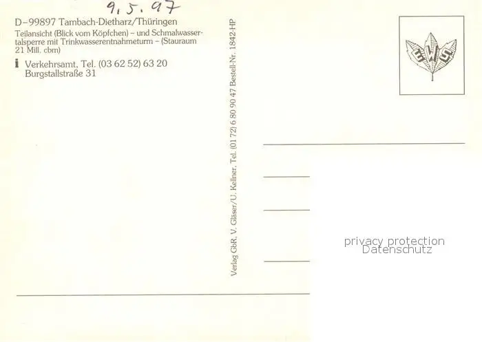 Tambach-Dietharz Panorama Schmalwassertalsperre Trinkwasserentnahmeturm Tambach-Dietharz postalisch nicht gelaufen nach 1965 Erhaltung siehe scans [KathaD81] Kathoren