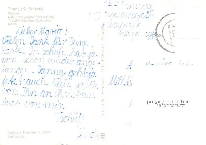 Tanna Stadion Naherholungsgebiet Leitenteiche Theodor Neubauer Oberschule Markt Tanna postalisch gelaufen 1986 Erhaltung siehe scans [FriedD77] Frierer