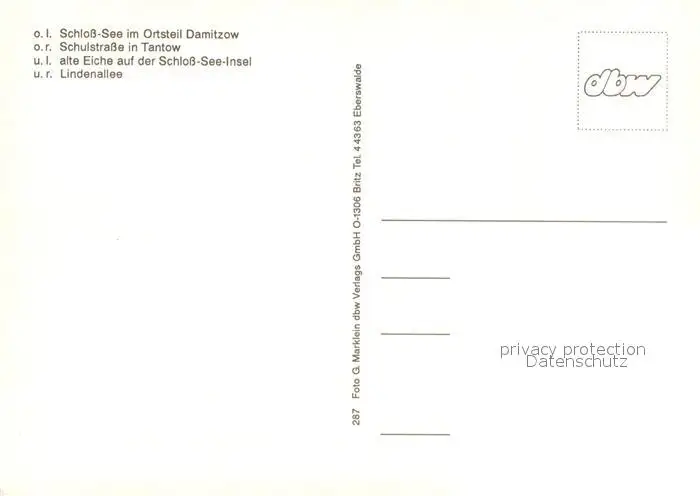 Tantow Schloss See in Damitzow Schulstrasse Alte Eiche Lindenallee Tantow postalisch nicht gelaufen nach 1965 Erhaltung siehe scans [WerneD78] WernPID7
