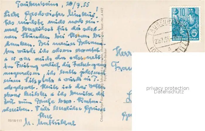 Taubenheim_Spree Kindergenesungsheim Taubenheim Spree postalisch gelaufen 1955 Erhaltung siehe scans [FriedD77] Frierer