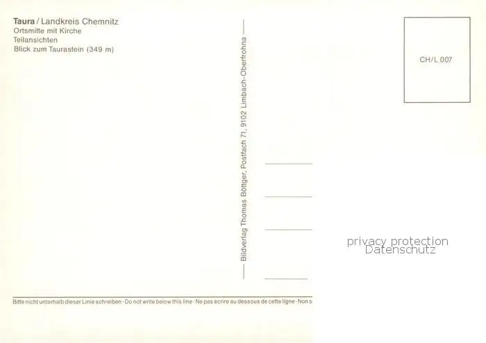 Taura_Burgstaedt Ortsmitte mit Kirche Teilansichten Blick zum Taurastein postalisch nicht gelaufen nach 1965 Erhaltung siehe scans [FriedD77] Frierer
