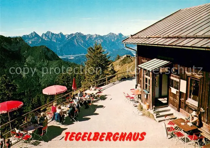 AK / Ansichtskarte Tegelberghaus_1720m_Allgaeu Terrasse mit Tiroler und Allgaeuer Hochgebirge