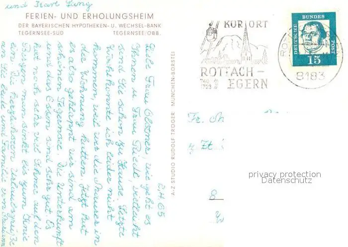 Tegernsee Ferien und Erholungsheim Tegernsee postalisch gelaufen 1965 Erhaltung siehe scans [WerneD78] WernPID7