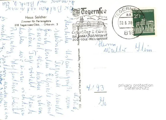 Tegernsee Kategorie Alte Ansichtskarten Postkarten bx93228 Tegernsee Haus Salcher Seepartie Tegernsee postalisch gelaufen 1970 Erhaltung siehe scans [WerneD78]