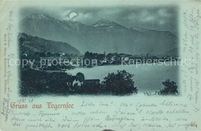 Tegernsee Panorama Mondschein Tegernsee postalisch gelaufen 1898 Erhaltung siehe scans [KathaD81] Kathoren