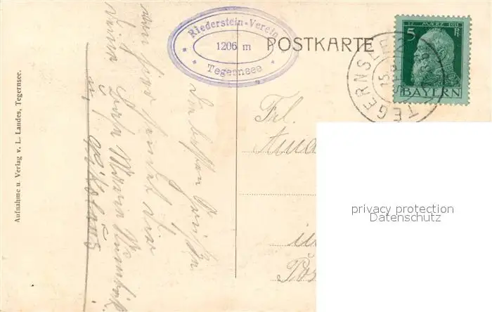 Tegernsee Riedersteinkapelle Altarbild Tegernsee postalisch gelaufen 1912 Erhaltung siehe scans [WerneD78] WernPID7
