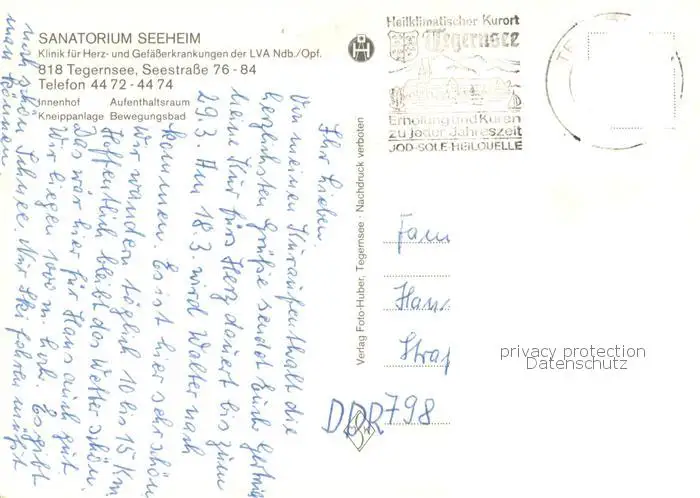 Tegernsee Sanatorium Seeheim Innenhof Foyer Hallenbad Wassertretanlage Tegernsee postalisch gelaufen nach 1965 Erhaltung siehe scans [FriedD77] Frierer