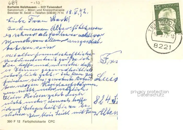 Teisendorf_Oberbayern Kurheim Holzhausen Sanatorium Teisendorf Oberbayern postalisch gelaufen 1972 Erhaltung siehe scans [WerneD78] WernPID7