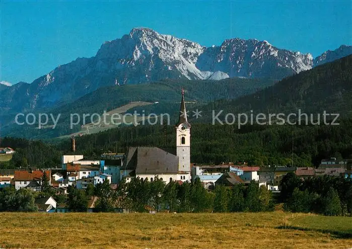 AK / Ansichtskarte Teisendorf_Oberbayern Ortsansicht mit Kirche Hochstaufen Chiemgauer Alpen Teisendorf Oberbayern