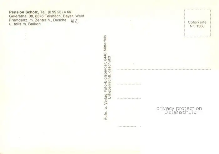 Teisnach Pension Schoetz Teisnach postalisch nicht gelaufen nach 1965 Erhaltung siehe scans [WerneD78] WernPID7