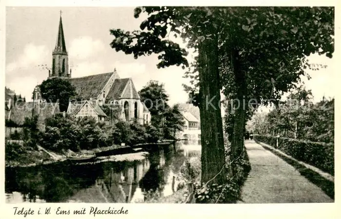 AK / Ansichtskarte Telgte_Warendorf Ems Promenade mit Blick zur Kirche Telgte Warendorf
