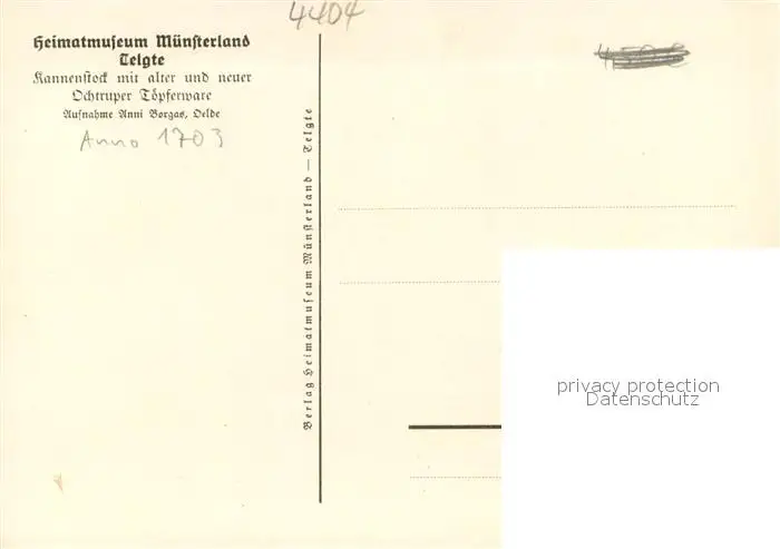 Telgte_Warendorf Heimathaus Muensterland Kannenstock Ochtruper Toepferware Telgte Warendorf postalisch nicht gelaufen 1921-1965 Erhaltung siehe scans [FriedD77] Frierer