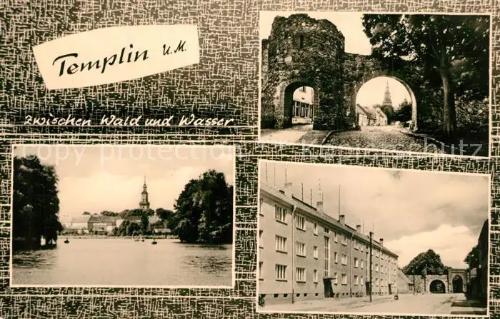 AK / Ansichtskarte Templin Ansicht vom See aus Torbogen Ruine Wohnblock Handabzug Templin