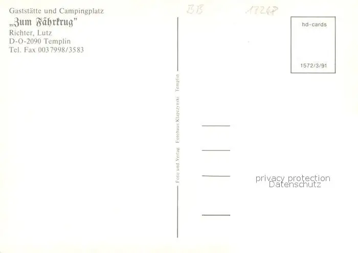 Templin Gaststaette Campingplatz Zum Faehrkrug Templin postalisch nicht gelaufen 1991 Erhaltung siehe scans [FriedD77] Frierer
