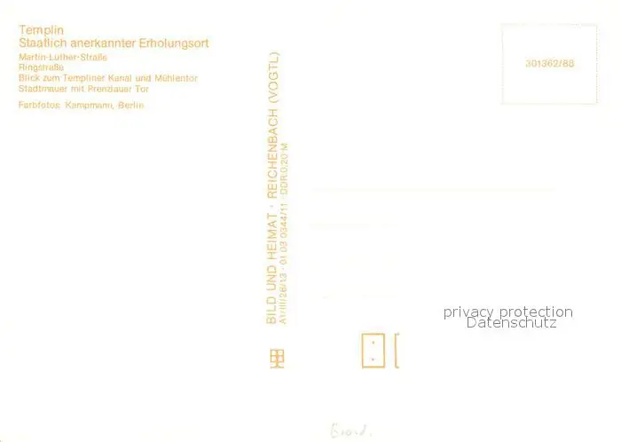 Templin Martin Luther Strasse Fachwerkhaeuser Ringstrasse Templiner Kanal Muehlentor Stadtmauer Prenzlauer Tor Templin postalisch nicht gelaufen 1988 Erhaltung siehe scans [FriedD77] Frierer