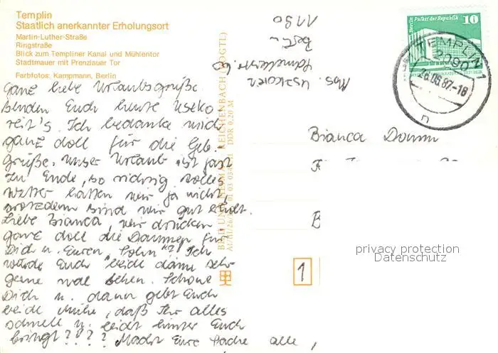 Templin Martin Luther Strasse Fachwerkhaeuser Ringstrasse Wohnsiedlung Templiner Kanal Muehlentor Stadtmauer Prenzlauer Tor Templin postalisch gelaufen 1987 Erhaltung siehe scans [FriedD77] Frierer