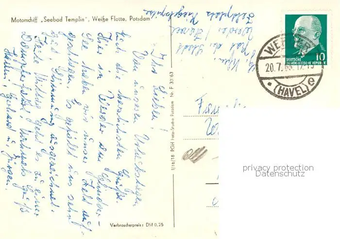 Templin Motorschiff Seebad Templin Weisse Flotte Templin postalisch gelaufen 1963 Erhaltung siehe scans [FriedD77] Frierer