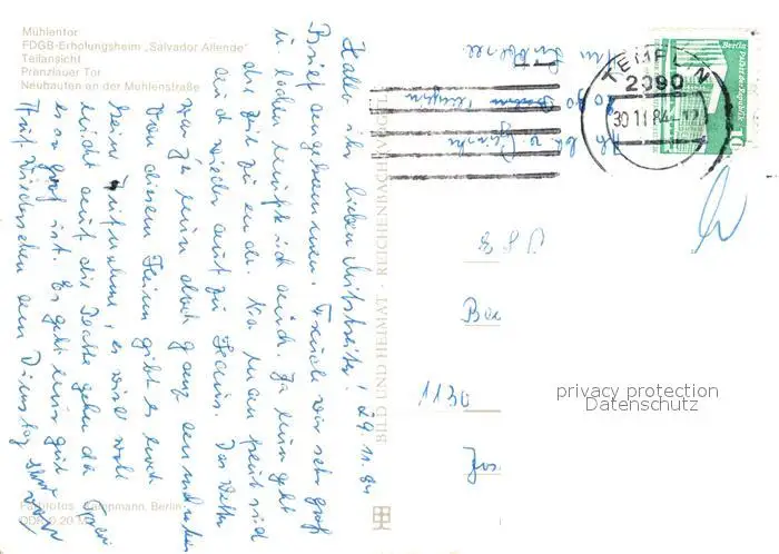 Templin Muehlentor FDGB Erholungsheim Salvador Allende Prenzlauer Tor Neubauten Muehlenstrasse Templin postalisch gelaufen 1984 Erhaltung siehe scans [FriedD77] Frierer