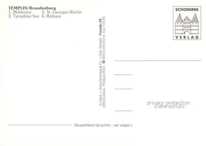 Templin Muehlentor St Georgen Kirche Templiner See Rathaus Templin postalisch nicht gelaufen nach 1965 Erhaltung siehe scans [WerneD78] WernPID7