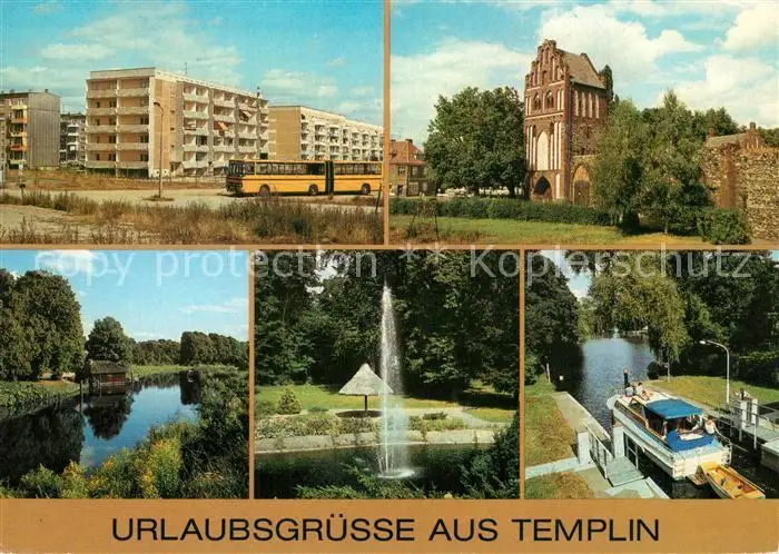 AK / Ansichtskarte Templin Ringstrasse Wohnsiedlung Stadtmauer Prenzlauer Tor Templiner Kanal Springbrunnen Buergerpark Schleuse Templin