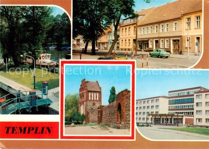 AK / Ansichtskarte Templin Schleuse Templiner Kanal Am Markt Stadtmauer mit Wiekturm und Prenzlauer Tor FDGB Erholungsheim Salvador Allende Bettenhaus Templin
