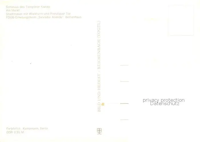 Templin Schleuse Templiner Kanal Am Markt Stadtmauer mit Wiekturm und Prenzlauer Tor FDGB Erholungsheim Salvador Allende Bettenhaus Templin postalisch nicht gelaufen nach 1965 Erhaltung siehe scans [FriedD77] Frierer