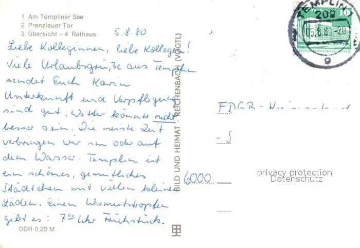 Templin Templiner See Prenzlauer Tor Panorama Rathaus Templin postalisch gelaufen 1980 Erhaltung siehe scans [FriedD77] Frierer