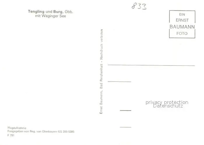 Tengling und Burg mit Waginger See Fliegeraufnahme Tengling postalisch nicht gelaufen nach 1965 Erhaltung siehe scans [WerneD78] WernPID7