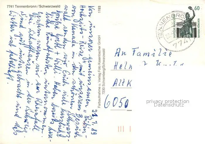 Tennenbronn Panorama Luftkurort Schwarzwald Bauernhaus Kuehe See Ferienhaeuser Trachten Tennenbronn postalisch gelaufen 1989 Erhaltung siehe scans [FriedD77] Frierer