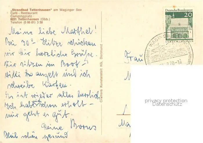 Tettenhausen Strandbad am Waginger See Restaurant Badesteg Tettenhausen postalisch gelaufen 1970 Erhaltung siehe scans [FriedD77] Frierer