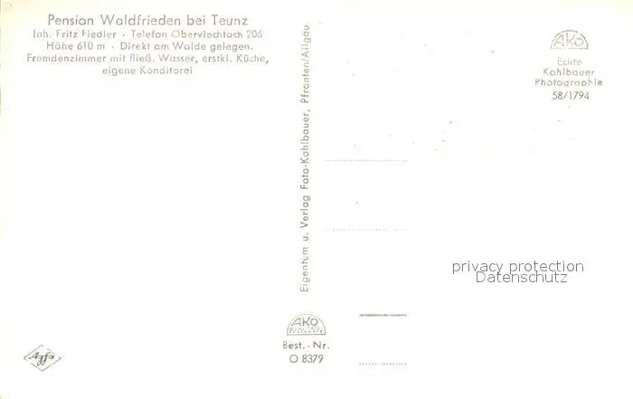 Teunz Pension Waldfrieden Landschaftspanorama Burg Obermurach Teunz postalisch nicht gelaufen 1921-1965 Erhaltung siehe scans [FriedD77] Frierer