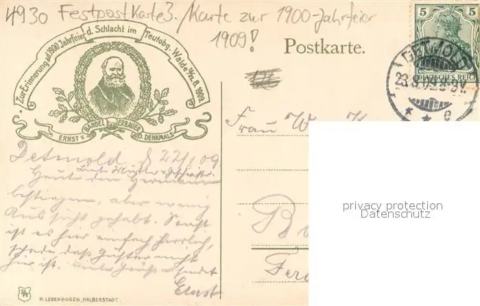 Teutoburgerwald Hermannsdenkmal Teutoburgerwald postalisch gelaufen 1909 Erhaltung siehe scans [WerneD78] WernPID7