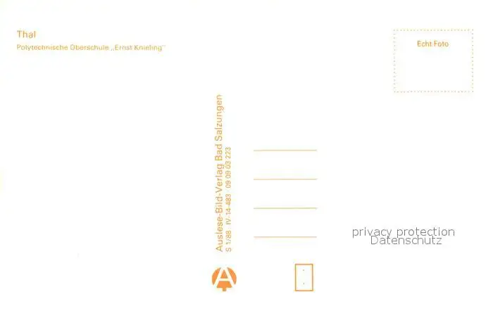 Thal_Ruhla Polytechnische Oberschule Ernst Knieling Thal_Ruhla postalisch nicht gelaufen 1988 Erhaltung siehe scans [FriedD77] Frierer