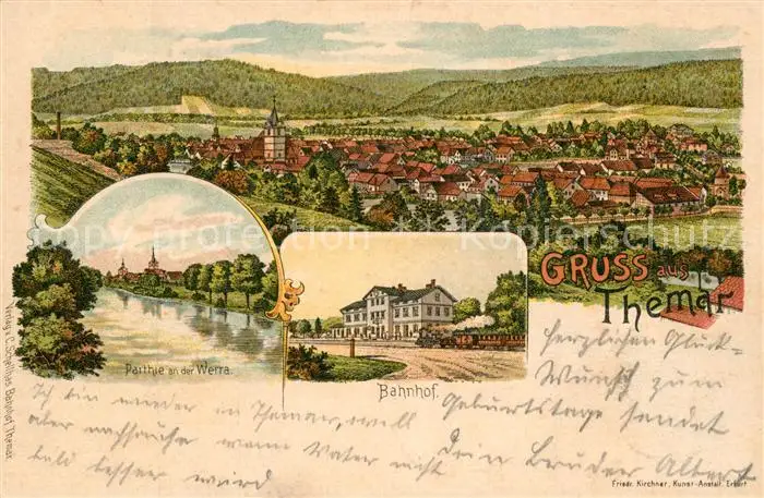 Themar Kategorie Alte Ansichtskarten Postkarten bx76042 Themar Werra Bahnhof Panorama Themar postalisch gelaufen 1901 Bahnpost Erhaltung siehe scans [KathaD81]