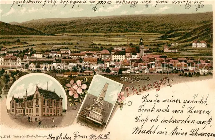 Thiengen Rhein Kategorie Alte Ansichtskarten Postkarten bx56421 Thiengen_Rhein Kriegerdenkmal Neue Schule Thiengen Rhein postalisch gelaufen 1902 Erhaltung siehe scans [NatalD47]