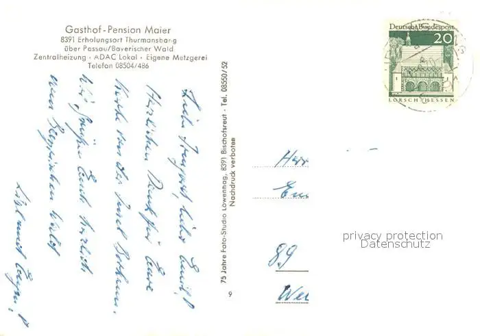 Thurmansbang Gasthof Pension Kirche Erholungsort Uferpartie an der Donau Thurmansbang postalisch gelaufen 1970 Erhaltung siehe scans [FriedD77] Frierer