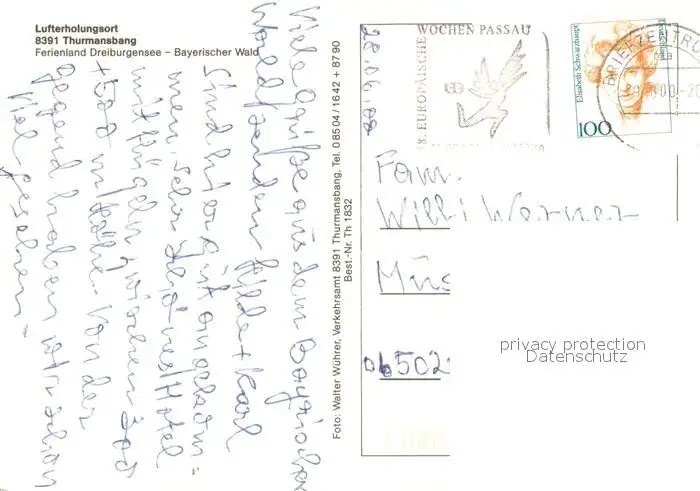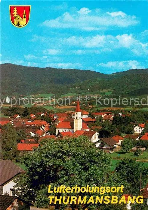 Thurmansbang Ortsansicht mit Kirche Lufterholungsort Bayerischer Wald Thurmansbang postalisch gelaufen 2000 Erhaltung siehe scans [FriedD77] Frierer